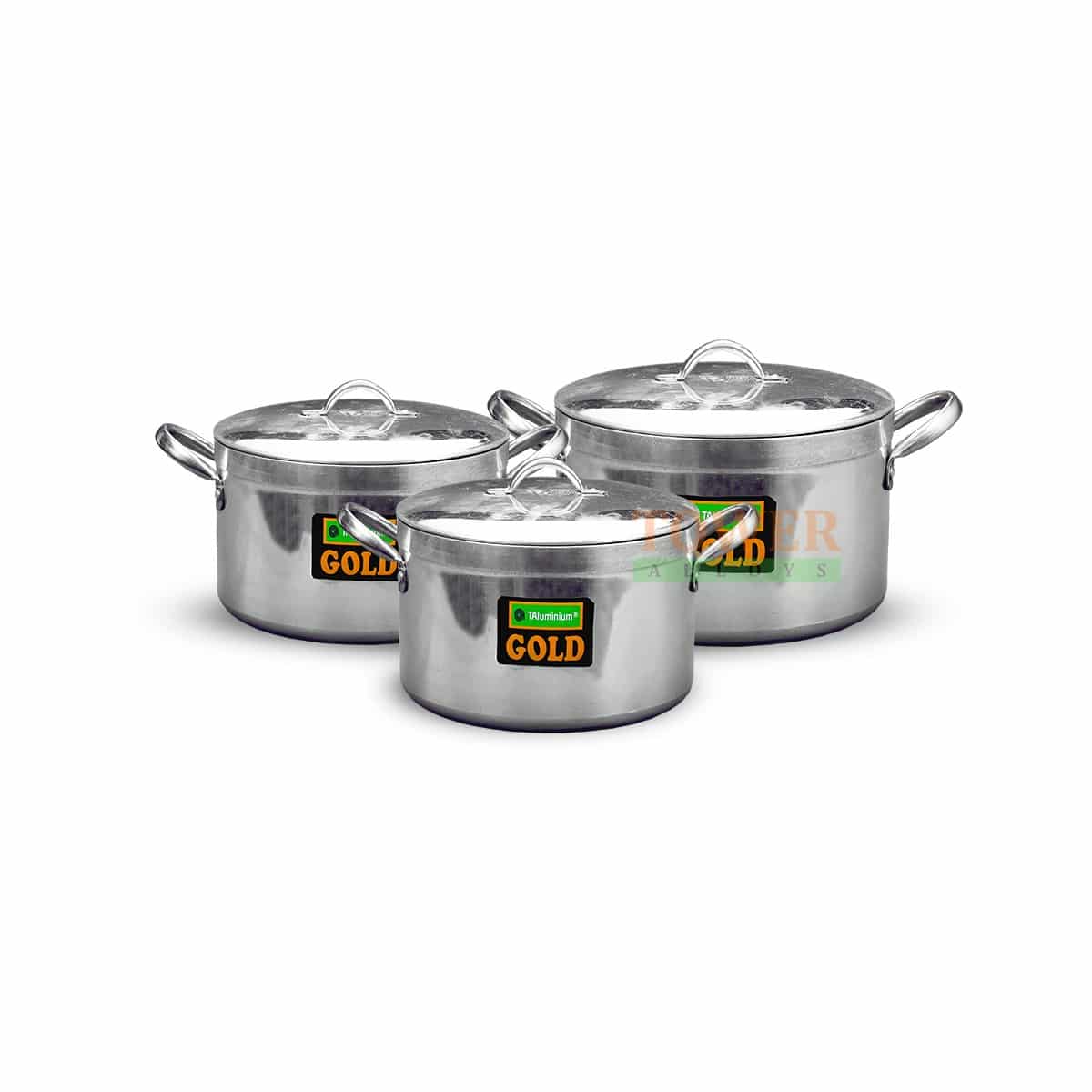 Gold 3G – is a premium cookware that make kitchen standout with its great polished finishes, and well designed for comfort and efficiency, ergonomic stainless-steel handle for easy handling; comes in three (3) sizes that take care of cooking needs; made from pure grade strong and durable aluminum, very easy to wash and clean after use; remains rust-free for longer usage. Gold 3G can serve as a gift and a great ideal for family cooking.