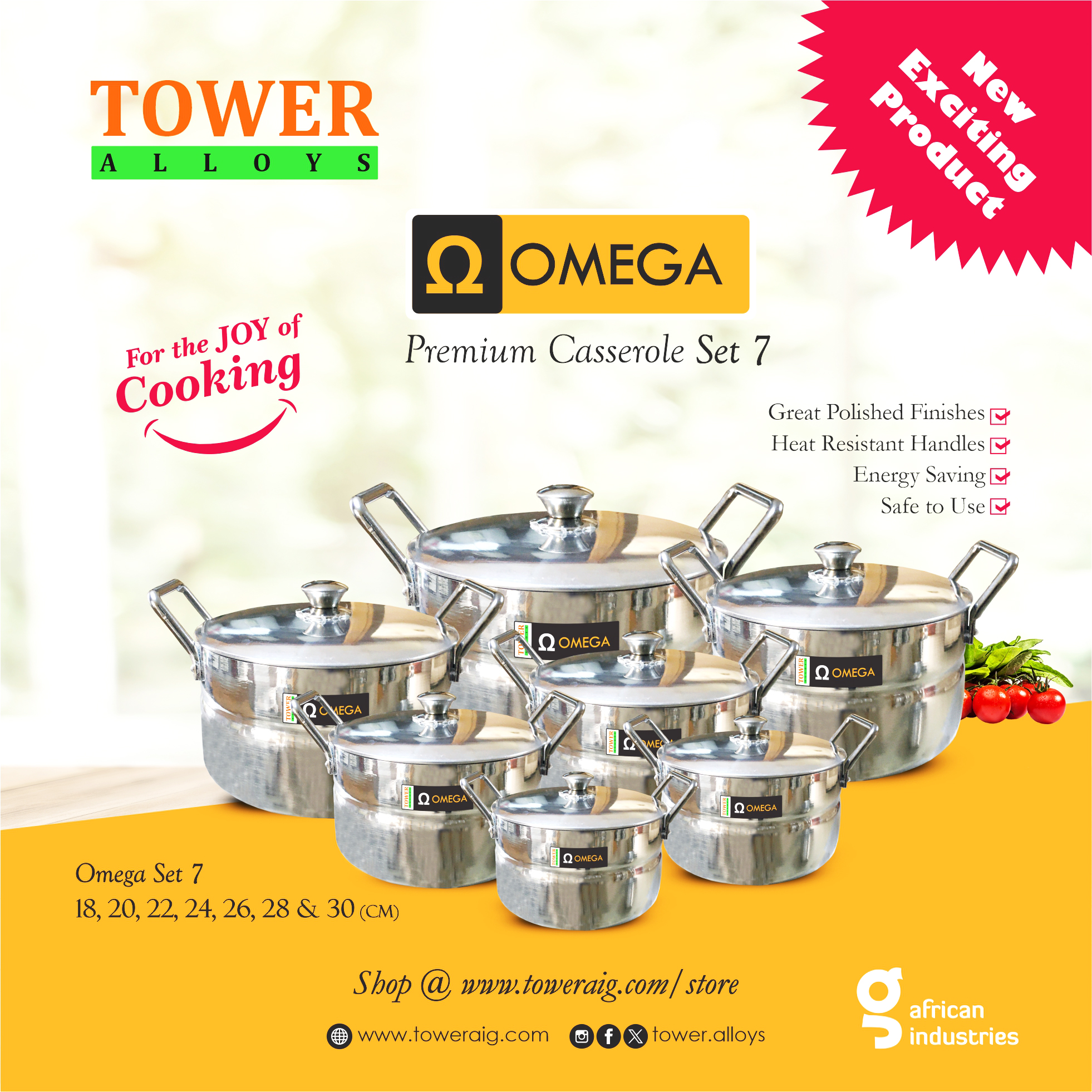 Introducing the new **Ω Omega**, the pinnacle of cookware design in our Supreme product series. With a stunning gold finish, this premium cookware exudes luxury and performance. Featuring MSR Rod handles for superior grip and a CS Knob on the lid for effortless control, the Ω Omega is built for the modern chef who demands both style and functionality. Elevate your kitchen with this masterpiece—cooking has never looked or felt so good! Experience the perfect balance of elegance and performance with the new Ω Omega cookware.