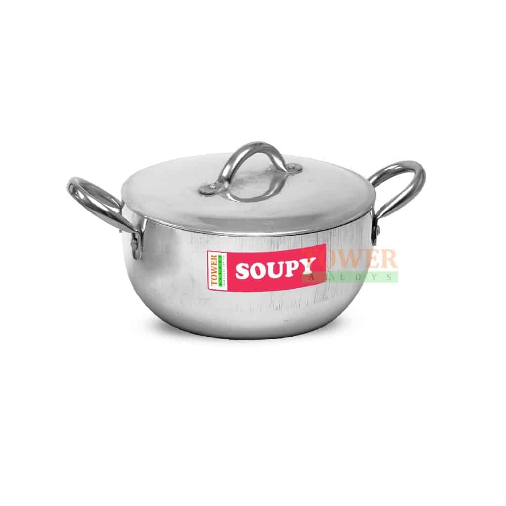 Soupy Pan single is an elegant cookware that make kitchen look Okay with its great polished finishes, and well designed for comfort and efficiency, ergonomic stainless-steel handle for easy handling. With its superiority thickness, which protects food from burning and scrolled bottom gives maximum heat transfer, uniform cooking and saves cooking fuel. It’s made from pure grade strong and durable aluminium, very easy to wash and clean after use. It remains rust free for longer usage. Soupy Pans can serve as a gift and a great ideal for family cooking as well as small functions.